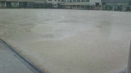 練習に頑張っていたところ、突然の大粒で強い雨。本日の朝練習は終了となりました。