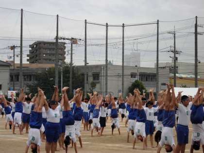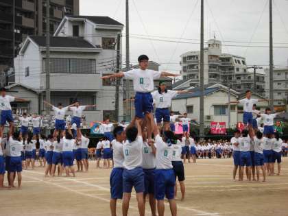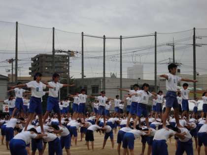 3年生318人の作品です。みんなの協力と信頼感がなければできません。