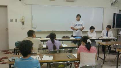 学校説明会はミーティング室で行い、歌島中学校下小学校の保護者の参加がありました。