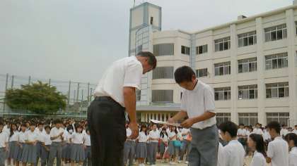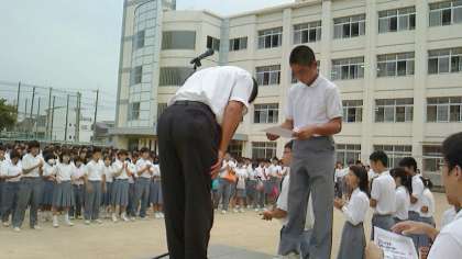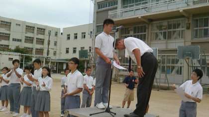 10月3日(月)全校集会で、校長先生より体育大会での頑張りをたたえる話がありました。