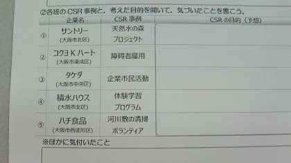 校区内のハチ食品の例があったり、コマーシャル等で知名度の高い企業もあり、親近感があり積極的にプリントに書き込んでいました。