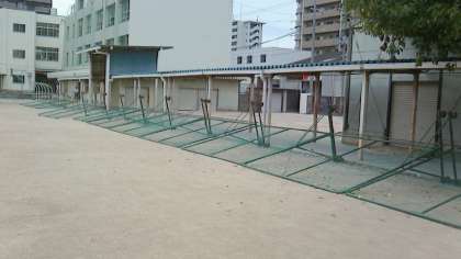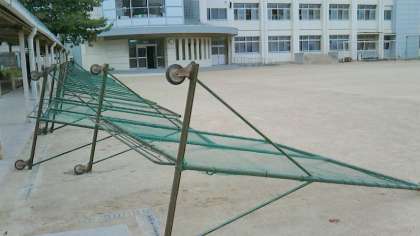 台風18号の強風に備えて、昨日部活動終了時に、運動部員に防球ネットを伏せていただきました。