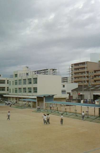 台風18号の雨が降ることもなく、お昼の休憩時間には生徒達はいつも通り、グランドで遊んでいました。ただしどす黒い雲の動きは早く、台風が近づいていることを感じます。