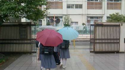 先ほどから雨が強く降ってきて、生徒達は傘をさしての下校となりました。中間テスト1週間前となり、部活動もなく足早に家路へと向かっていました。