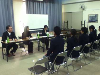 今年も好文学園女子高校から面接官として来てくださっています。生徒たちはふだん見せない緊張の面持ちで、ひとりひとり自分の意見や将来の希望を伝えていました。