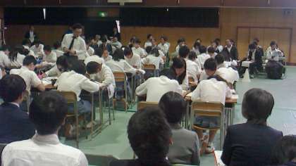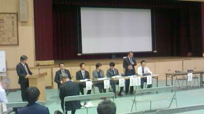 公開授業の後には研究発表があり、天王寺中学校の辻純也先生が基調提案をされました。辻先生は一昨年まで本校で教務主任をされてた先生で、生徒達にも懐かしかったのではないでしょうか。