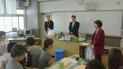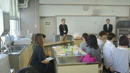 締め切りまでに46名の申し込みがあり、調理室は満員の盛況となり、保護者の学校給食に対する関心の高さを改めて知ることになりました。