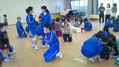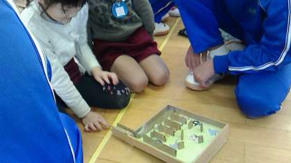 生徒が手作りのおもちゃを持参して、園児たちと遊びました。