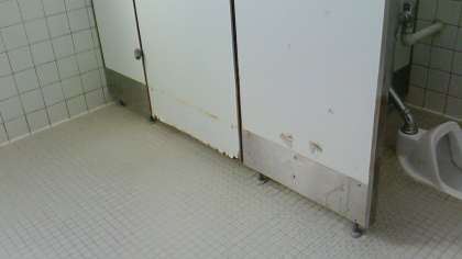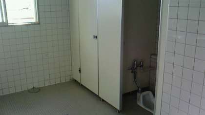 トイレの扉や間仕切りも傷みがひどく、修理ができないところもありました。真ん中の写真は一番状態の良い2階の写真ですが、他のところはこれよりはるかに傷んでいました。