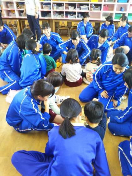 11月28日(月)3年5・6組が、家庭科保育実習を野里幼稚園でさせていただきました。