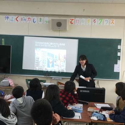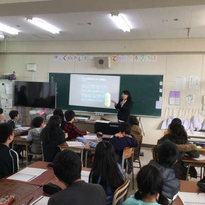 中学校と校区の小学校と連携し、中学校の教師が小学校に出向き、6年生を対象とした授業です。