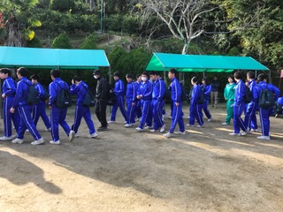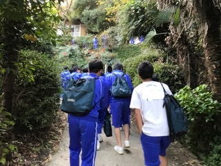 みかん狩りが終わり退所のあいさつです。今から学校るため駅に向かって歩いています。