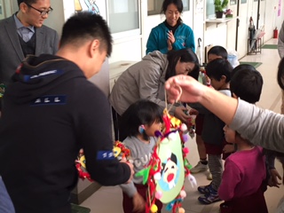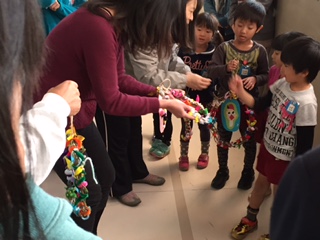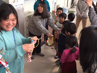 12月6日(火)の夕方に、野里幼稚園の園児が園長先生をはじめとする先生方とともに、歌島中学校にやってきました。