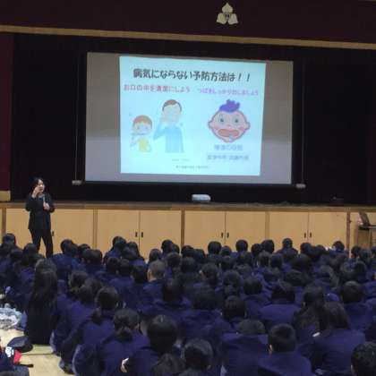 岡谷歯科校医さんからは、歯みがきと生活習慣のお話をしていただきました。