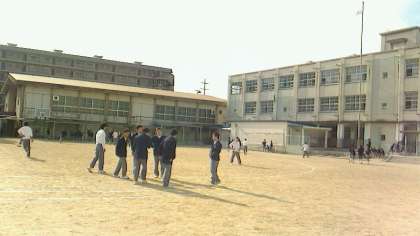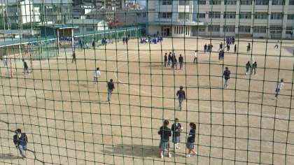昼休みの第1グラウンドの様子です。給食後の昼の休み時間には、多くの生徒がグラウンドに出てきて、それぞれ楽しんでいます。とりわけ鬼ごっこをしている生徒が多く、ストレス発散とばかりに走り回っている生徒を見かけます。けがをしないかと心配するほどです。
