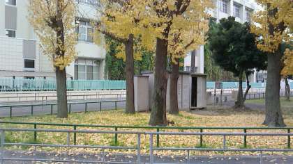 北之町公園のサクラの葉っぱは落葉し冬の装いです。最後の紅葉となった銀杏(イチョウ)は、樹木全体が見事なまでに黄色一色に染っていて見ごたえがあります。今まさに葉を落としつつあり、地面は黄色のじゅうたんを敷き詰めたようでした。