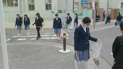 今日も先生と協力しながら紙ごみ等を拾い、多くのゴミを回収して戻ってきました。大勢の生徒が登校して来る8時過ぎにはすっかりきれいになっていました。