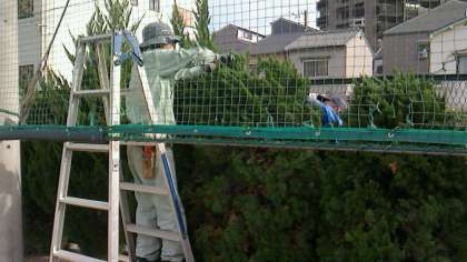 大阪市校園営繕園芸事務所の園芸班には、第2グラウンドの東側道路沿にある生垣の剪定もしていただきました。