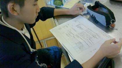 最後に今日の調理実習に対する、自己評価票の記入がありました。