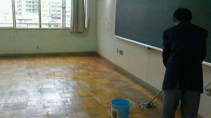 床が乾いてからワックスがけをしました。生徒達が率先してモップにてワックスを伸ばし、隅から隅までまんべんなく丁寧に塗っていました。何度もワックスを上塗りして光沢が増し、ピカピカに輝いていました。