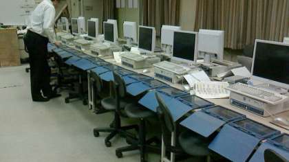 本日の作業は、パソコン教室にて「80台のタブレット」と「30台の授業用パソコン」が並べられ、一台ごとに設定をする膨大な作業量でした。