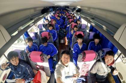 2年6組と2年7組のバスの様子です。みんなにこやかですね。