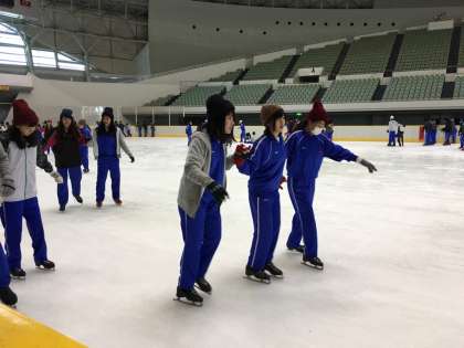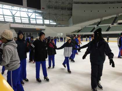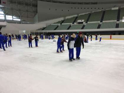 手すりから離れる人が増えたのには、慣れない友達の手をとって一緒に滑る人が増えたからですね。