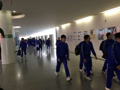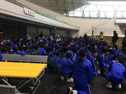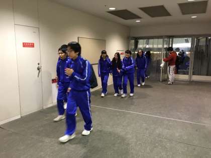 施設退去前の全体注意のあと、クラスごとに移動を開始しました。