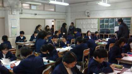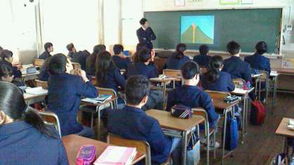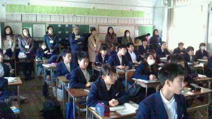 1年生の教室で参観していただいている様子です。また廊下で参観されておられる方も多かったです。この強風吹き抜けるグランドで参観していただいたクラスもありました。ありがとうございました。