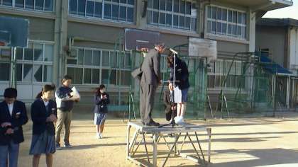 1月16日(月)に3学期初めての全校集会がありました。先週末からの寒波が厳しい状況での集会となりました。
