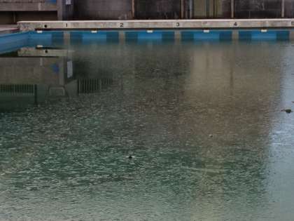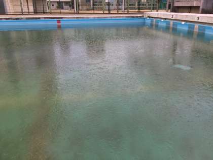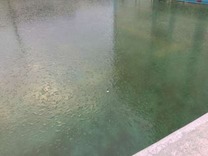 プールは表面が凍結していました。全面が完全に凍っているわけではありませんが、水面が結晶でデコボコしているのが解ります。そろそろ冷えも緩み気温が上がってほしいものです。