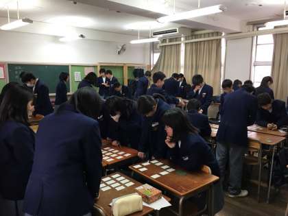 1月24日(火)6限、2年生では、月末の百人一首大会に向けて、クラスでの練習を行いました。