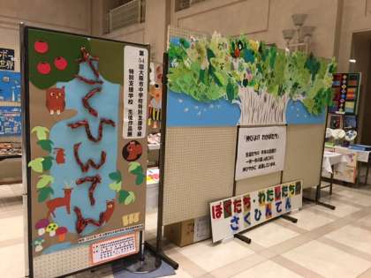 1月24日(火)に大阪市役所で開催されている「大阪市中学校特別支援学級・特別支援学校 生徒作品展」に出展した生徒たちが展示を見学しました。