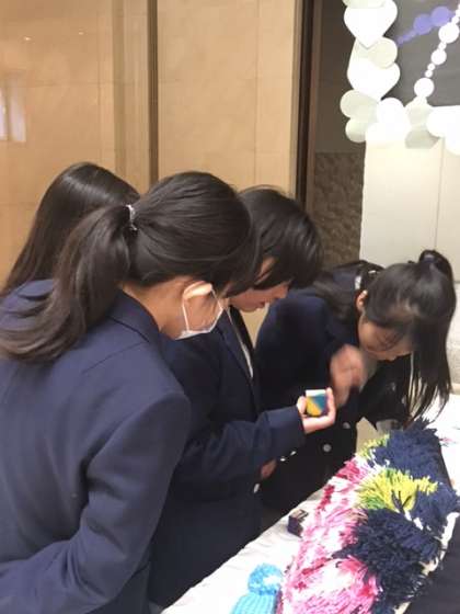 自分たちが作ったキューブパズルに挑戦したり、他校の作品を鑑賞したりして楽しんでいました。