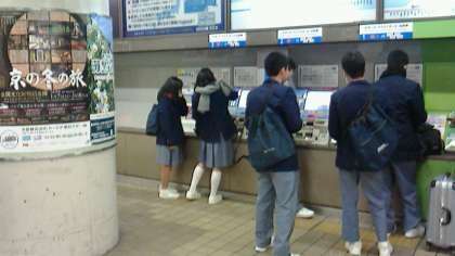 今朝7時10分頃の塚本駅での生徒達の様子です。生徒達は先生の顔を見て安堵の表情を浮かべながら会話を交わし、切符の購入後それそれが改札口を通り、試験会場の高校へと向かっていきました。JR環状線の事故による不通も運転再開となりひと安心です。