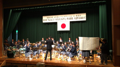 「表彰式お祝い演奏」として、歌島中学校吹奏楽部が、「『君の名は』メドレー」「コパカバーナ」など5曲を演奏しました。