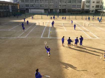 通常定期テストの最終日は、昼食後すぐに部活動が始まります。しかし学年末テストのときは、3年生が普通通り午後も授業を行っています。今日は生徒達がテスト終了後一度帰宅をして、3時30分頃に再度登校しての部活動となりました。