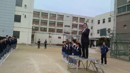 校長先生から、「豊かな夢を持ち明日への希望を持ってください」とのお話がありました。自分の未来への扉は自分で開けてください。どんなハンディーをも乗り越えたヘレンケラーの例を出して、あきらめることなく自分で乗り越えてくださいと話されました。