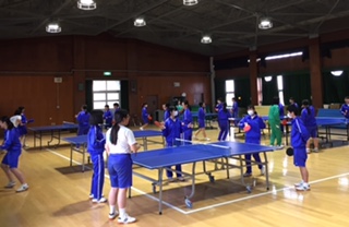 女子体育の授業の様子です。講堂での卓球、体育館でのドッジボールと慣れ親しんだ思い出の場所で、球に気持ちを込めて汗を流しました。