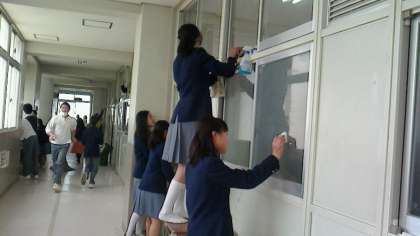 廊下ではアルミサッシの窓枠を磨いている人も見かけました。