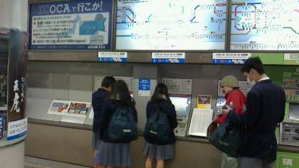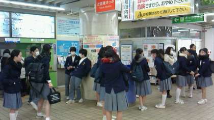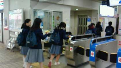 今朝7時20分頃の塚本駅での生徒達の様子です。生徒達は先生の周りに集まって会話を交わし、切符購入後同一方向の友を誘いながら改札口をとおり、試験会場の高校へと向かっていきました。