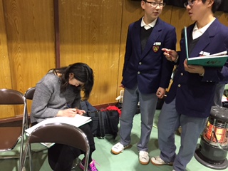 あちらこちらで先生方にアルバムに書いてもらっています。