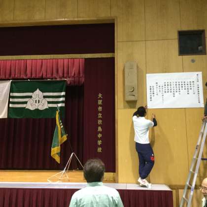 3月13日(月)午後、1年生徒と教職員で、卒業式の会場準備を行いました。式場の外は2年生の生徒と教職員で整備していただきました。
