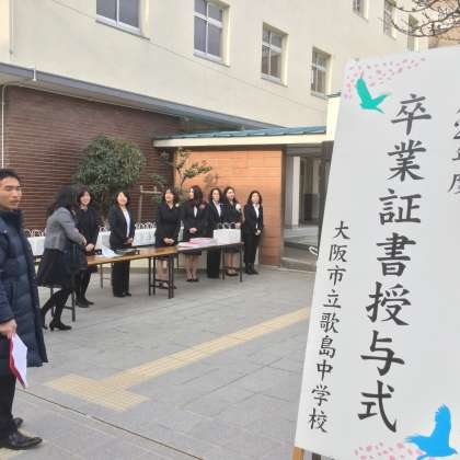 朝は地面が濡れていましたが、卒業生が登校するころには晴れてきて、絶好の卒業式日和となりました。