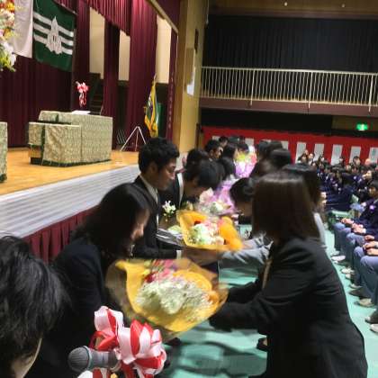 最後に保護者より3年職員への花束贈呈があり、暖かい言葉が添えられていました。