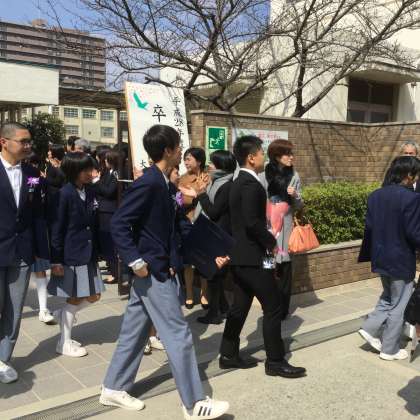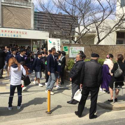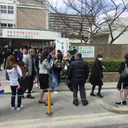 退場の列は正門から第2グラウンドまで続いていきました。お天気にも恵まれ春の陽ざしを浴びて、祝福の言葉をいっぱいいただきながらの列となりました。
