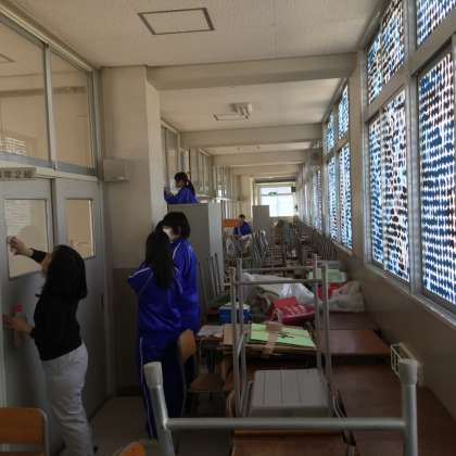 ワックスが乾いたころには、廊下に置いてあった机・いすを教室内に運び込み、授業時の並びに整えていただきました。