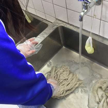作業後の後始末では、冷たい水にもかかわらずモップを丁寧に手洗いしてくれました。ご苦労様でした。