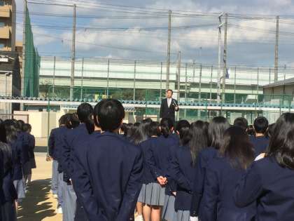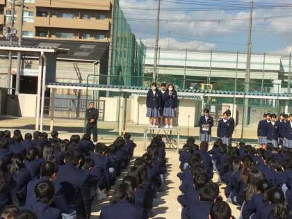 3月17日(金)の6時間目に、第1グランドにて「平成29年度 前期生徒会役員選挙の候補者演説」が行われました。