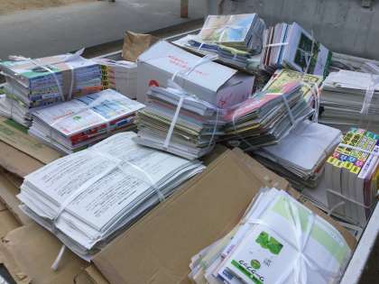 作業中の写真を撮り忘れていて、最後に気づき少ししか古紙が載せてない写真となりました。ビニール袋山積の写真を掲載できなくて残念です。